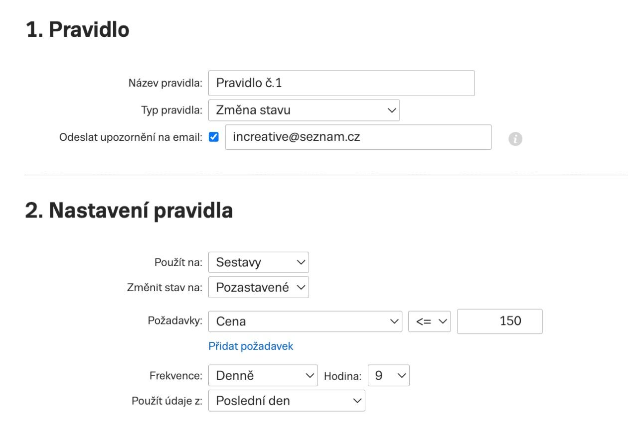 Přehled pravidel: V sekci "Nástroje" přejděte na "Automatizace" a následně na "Pravidla". Zde můžete vytvořit vlastní pravidla, která vás upozorní na: