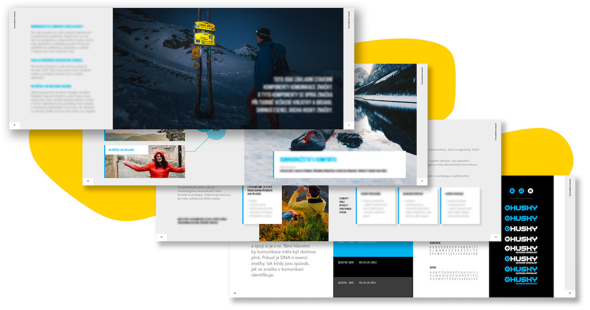 Jsou v něm ukotveny také cílové skupiny, grafické prvky a tonalita. Vše je završeno názornými ukázkami, jak postupovat v souladu s brandovou identitou značky při tvorbě kampaní (tzn. komunikace on brand). Tento výstup poslouží klientovi při celé řadě aktivit v každodenním marketingu.