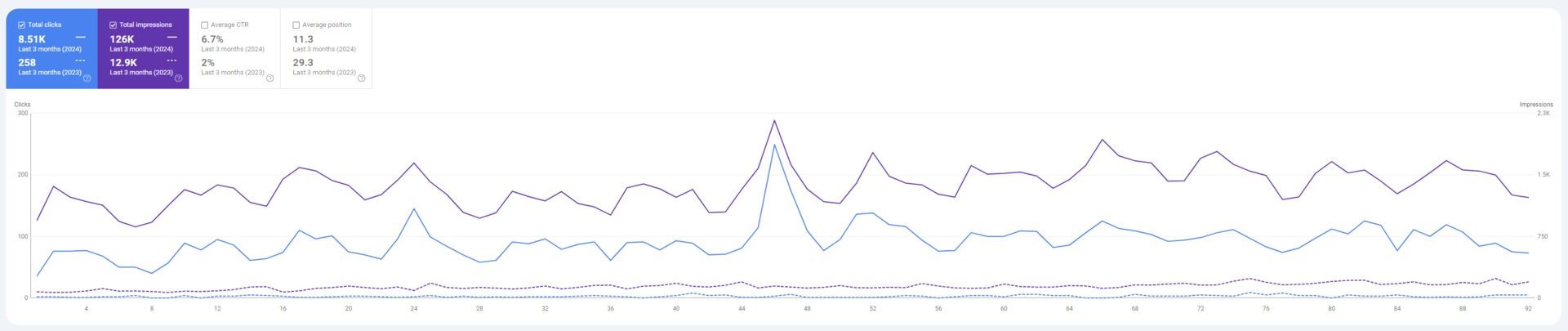 Počet kliků na web z organického vyhledávání | 253 | 8 310 (3 284,6 %) |
