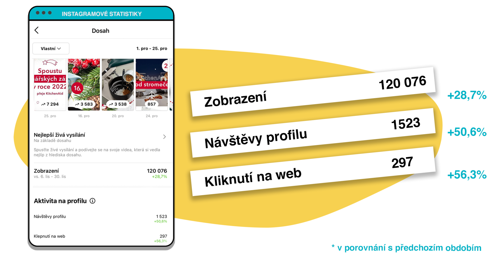 Jak je z instagramových statistik patrné, vybrali jsme druhou možnost. Ke sdílení jsme využili propojení napříč kanály a závěrečný triplet příspěvků jsme připravili tak, abychom ho mohli použít jako video i banner, a to od Facebooku po newsletter. O kalendáři jsme se samozřejmě nezapomněli zmínit na všech ostatních kanálech.