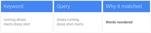Pojďme si uvést příklad. Jste prodejce barev a v reklamní sestavě používáte klíčové slovo [Barvy sklo] v přesné shodě. Dosud se vaše reklama zobrazovala pouze tehdy, když klíčové slovo odpovídalo vyhledávacímu dotazu (AdWords však bral v potaz překlepy nebo ne/využití diakritiky. Takže i například dotaz Barvy sklp reklamu zobrazil.) Nově se reklama zobrazí i uživatelům, kteří vyhledávají například Barvy na sklo nebo Sklo barvy.