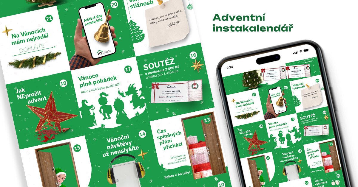 Kdy jindy popustit uzdu fantazie ještě více než v předvánočním čase? Pro HT dveře jsme vytvořili parádní adventní kalendář sestávající z 24 hravých políček vedoucích až do Štědrého dne. Minisoutěže, návody, dárečky, vtipy, to vše opět v brandovém provedení s argumentací podporující naše produkty.