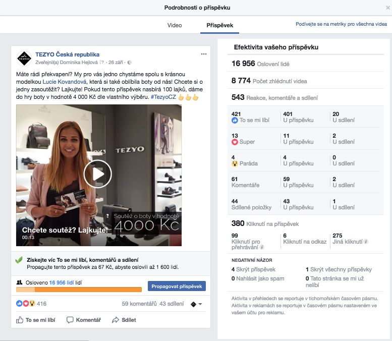 Samozřejmě to nebylo úplně zadarmo. Na všechna soutěžní videa jsme rozjeli kampaňs detailně nastaveným cílením na pečlivě vybraná lookalike publika dosavadních fanoušků stránky. Podrobné rozdělení investic mezi jednotlivá videa najdete v závěru studie.