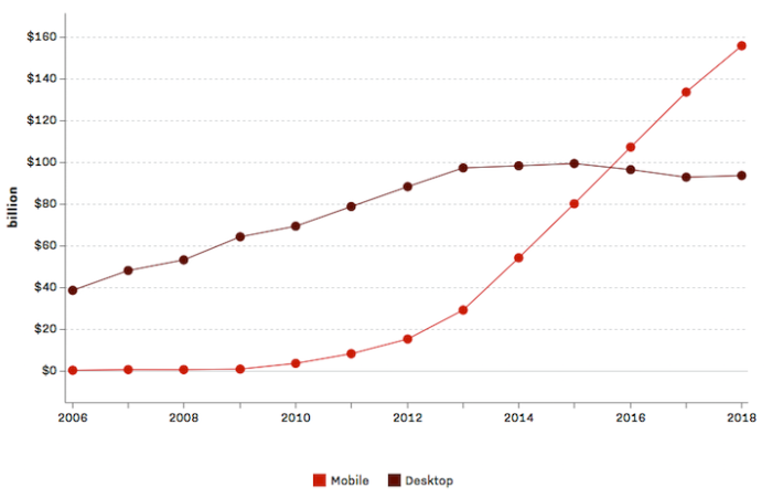 V průběhu posledních deseti let začal růst útrat za mobilní reklamu zprvu pozvolna a následně hodně strmě stoupat. A to na úkor reklam v klasickém počítači. Věříme, že tento trend ještě zdaleka není na ústupu, ba právě naopak. O důležitosti optimalizace webu pro mobilní zařízení jsme už před nějakou dobou také psali.