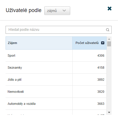 Na základě dat, která sbíráte retargetingem se dozvíte, jaké zájmy a pohlaví má vaše cílová skupina (po rozkliknutí RTG publika).